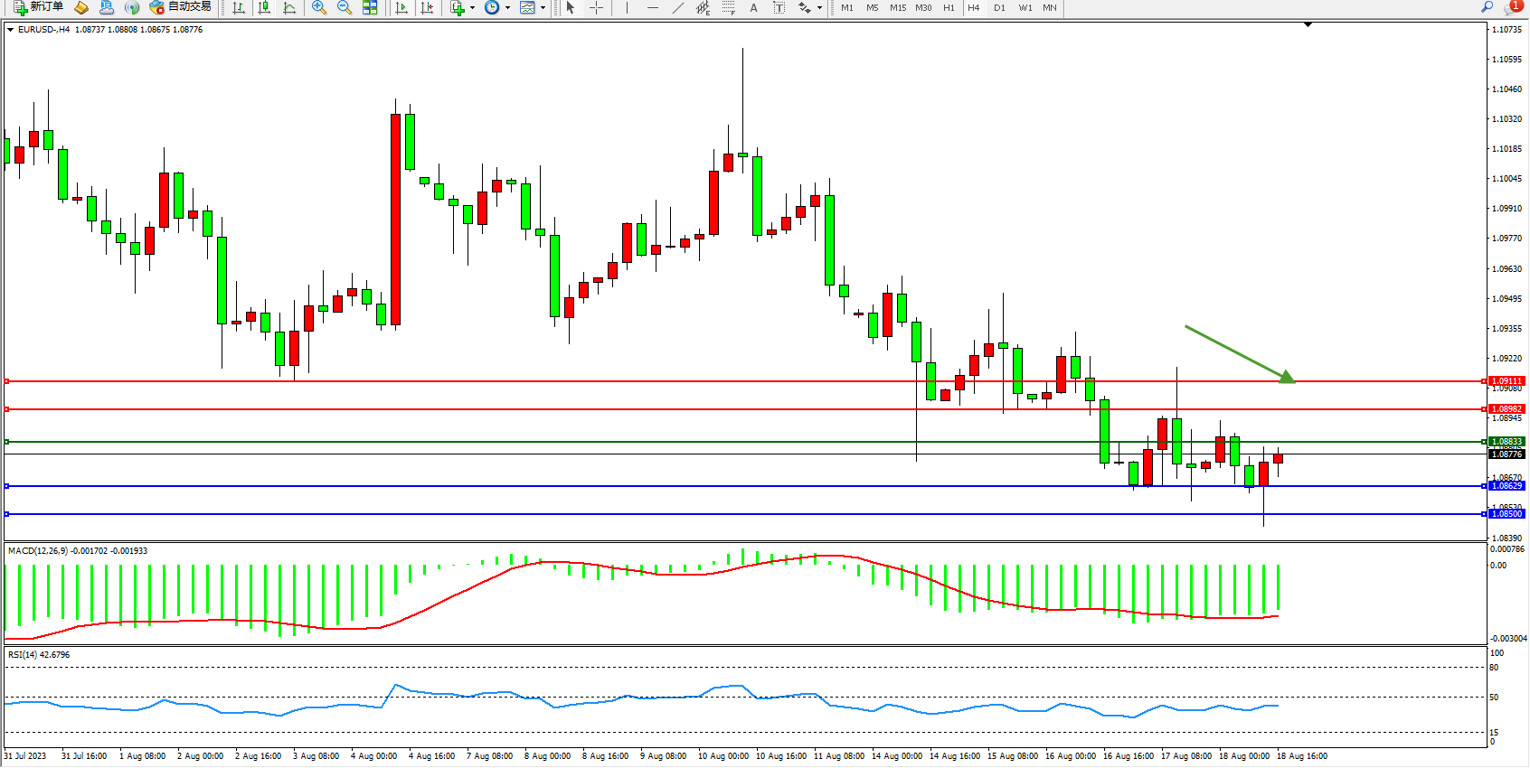 交易策略:1.08833下方看跌,目标1.08629  1.08500