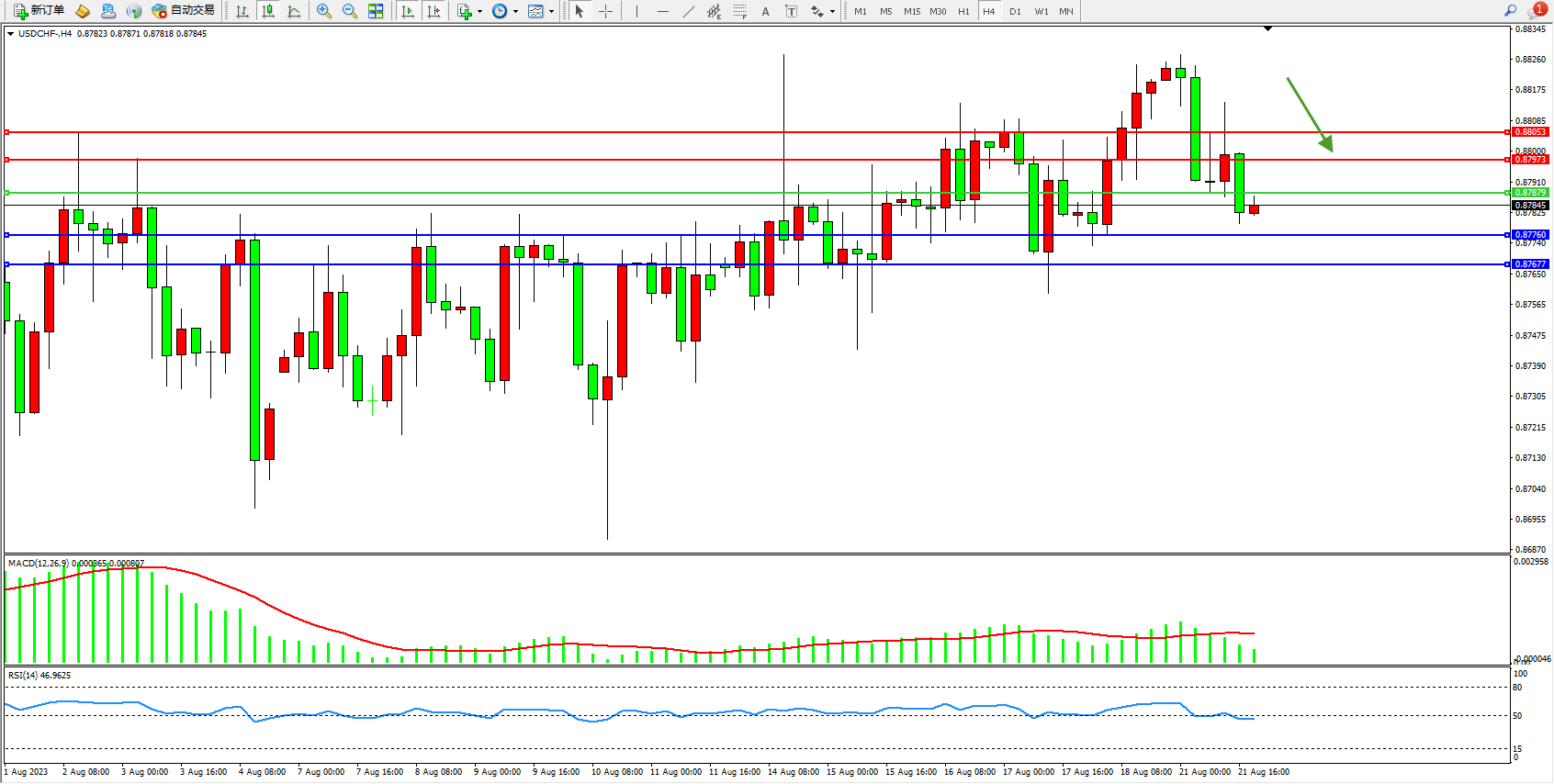 USDCHF:震荡下行 USDCHF  XAUUSD