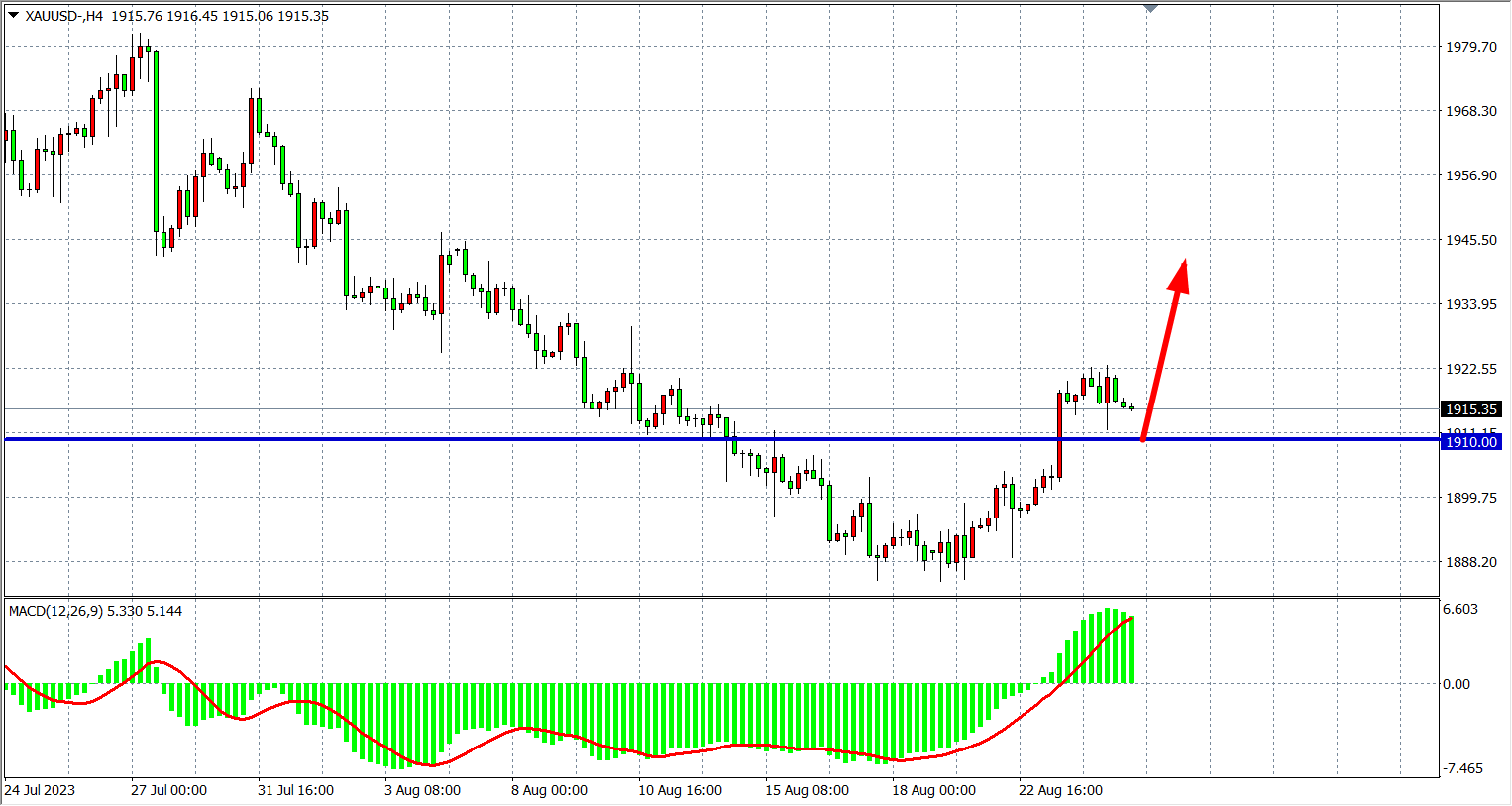 4小时图看,黄金维持在1910关口之上运行,MACD量能在零轴上放量,短线走势仍处多头,支撑关注1910附近,阻力关注上方1930-1940附近。