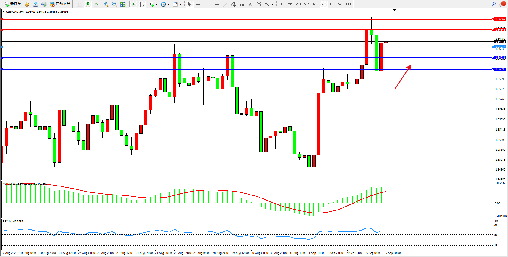 交易策略:1.36354上方看涨,目标1.36548  1.36667