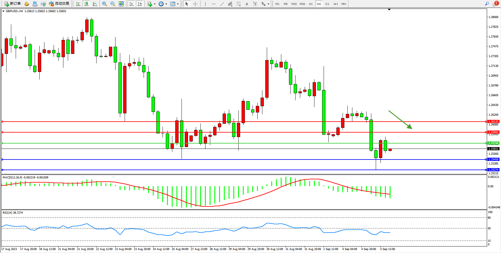交易策略:1.25748下方看跌,目标1.25458 1.25274