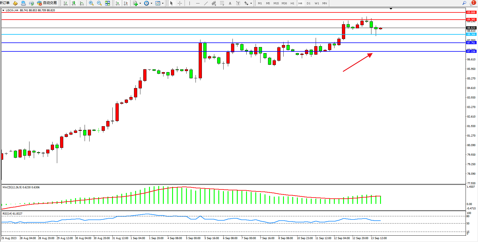原油维持88.820附近震荡,美国至9月8日当周EIA原油库存 395.5万桶,预期-191.2万桶,前值-630.7万桶。EIA俄克拉荷马州库欣原油库存 -245万桶,前值-175万桶。