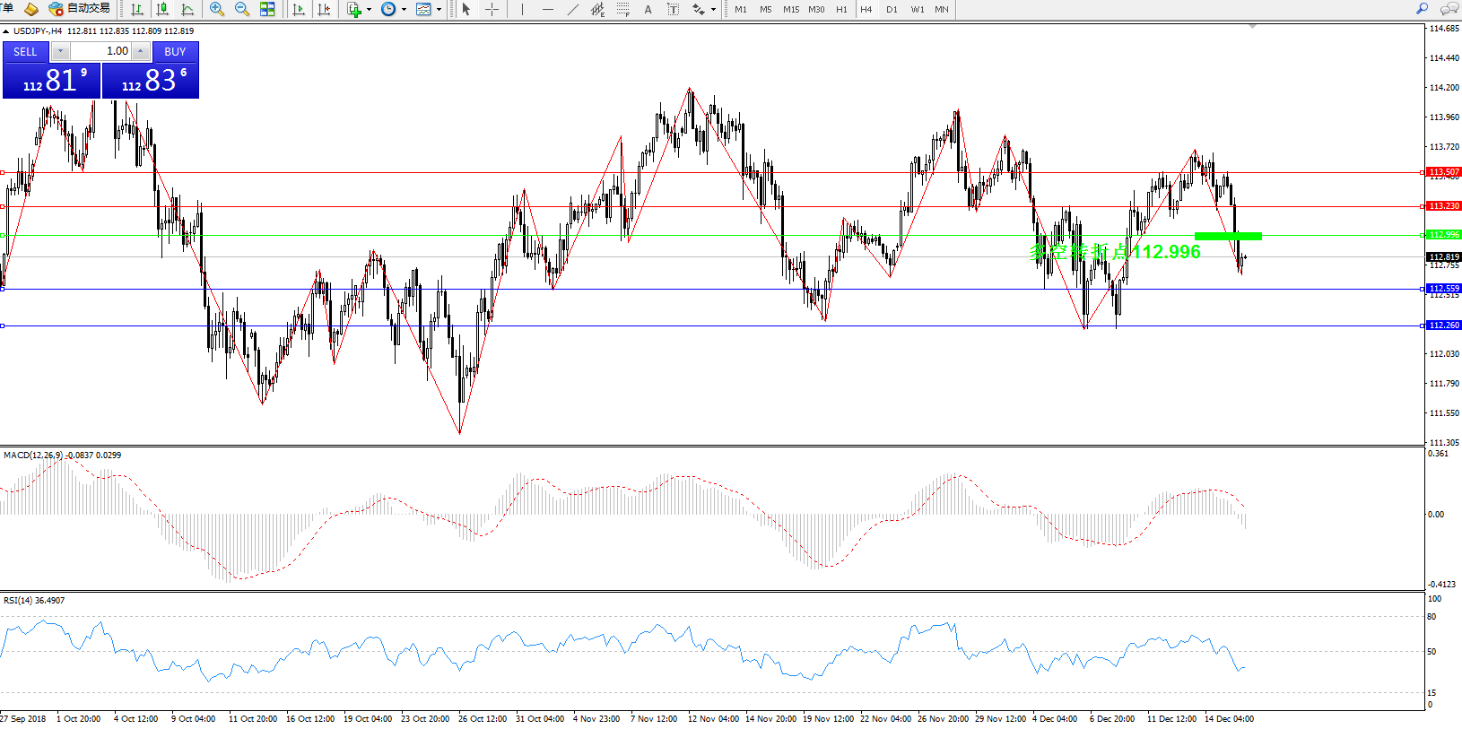 备选策略:112.996下方看跌,目标112.559112.260