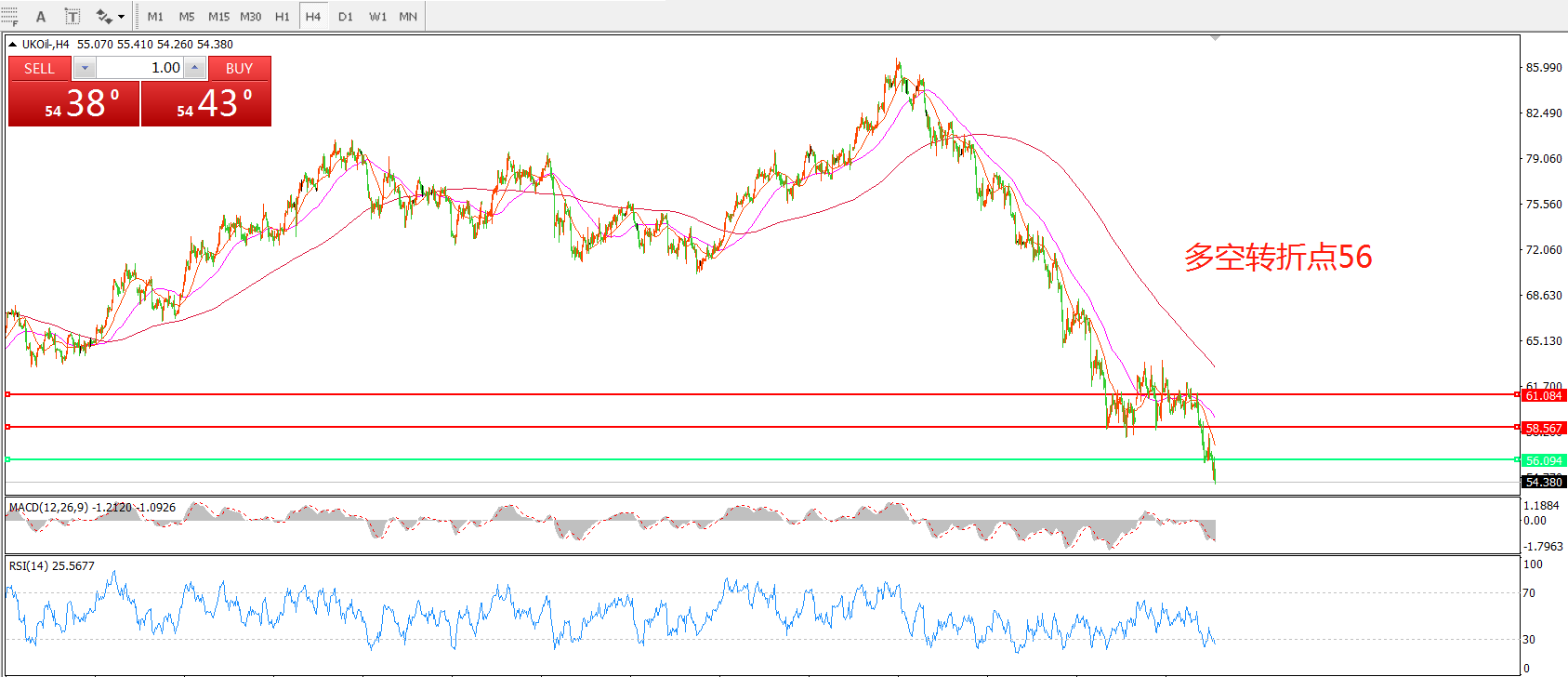 交易策略:在56.00之下看跌,目标53.00 50.00