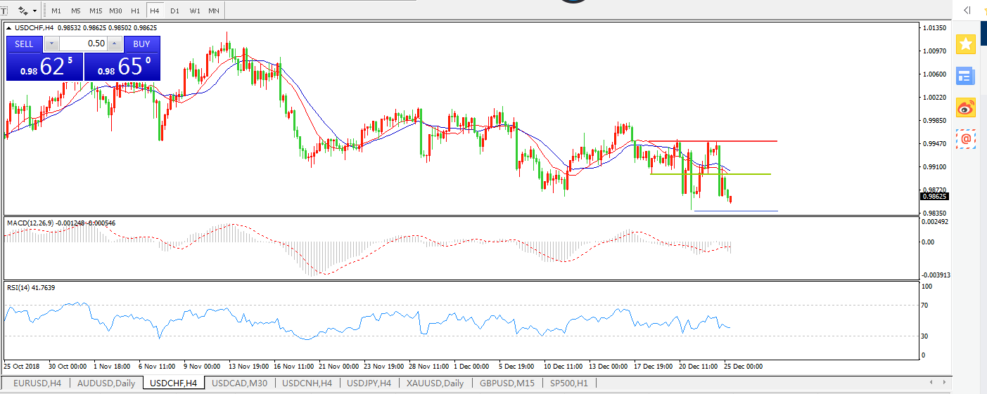 技术面简析: 均线死叉延续,MACD0轴下方放量,RSI再度下行,短期汇价有进一步走低试探低点的态势