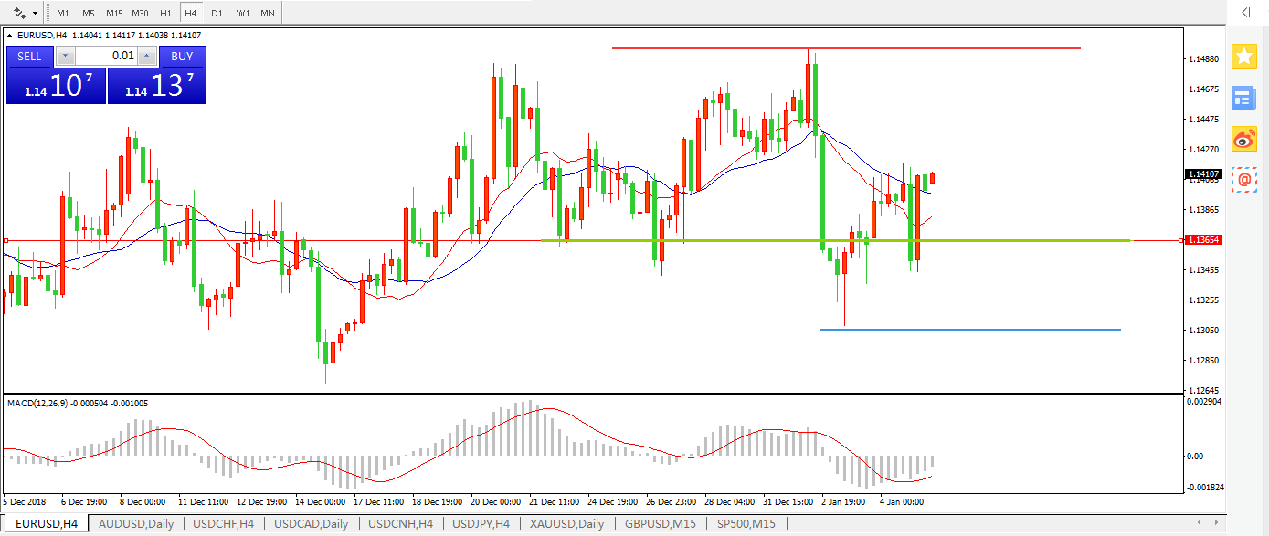 基本面分析:瑞银在最新发布的展望报告中预测,2019年美国加息周期接近尾声,而欧洲央行有望开始加息,利差给美元带来的优势将消退。随着美国财政刺激政策效应消退、财政及贸易赤字开始给美元带来压力,欧元兑美元汇率预计在半年和一年后将分别升至1比1.15和1比1.20左右。