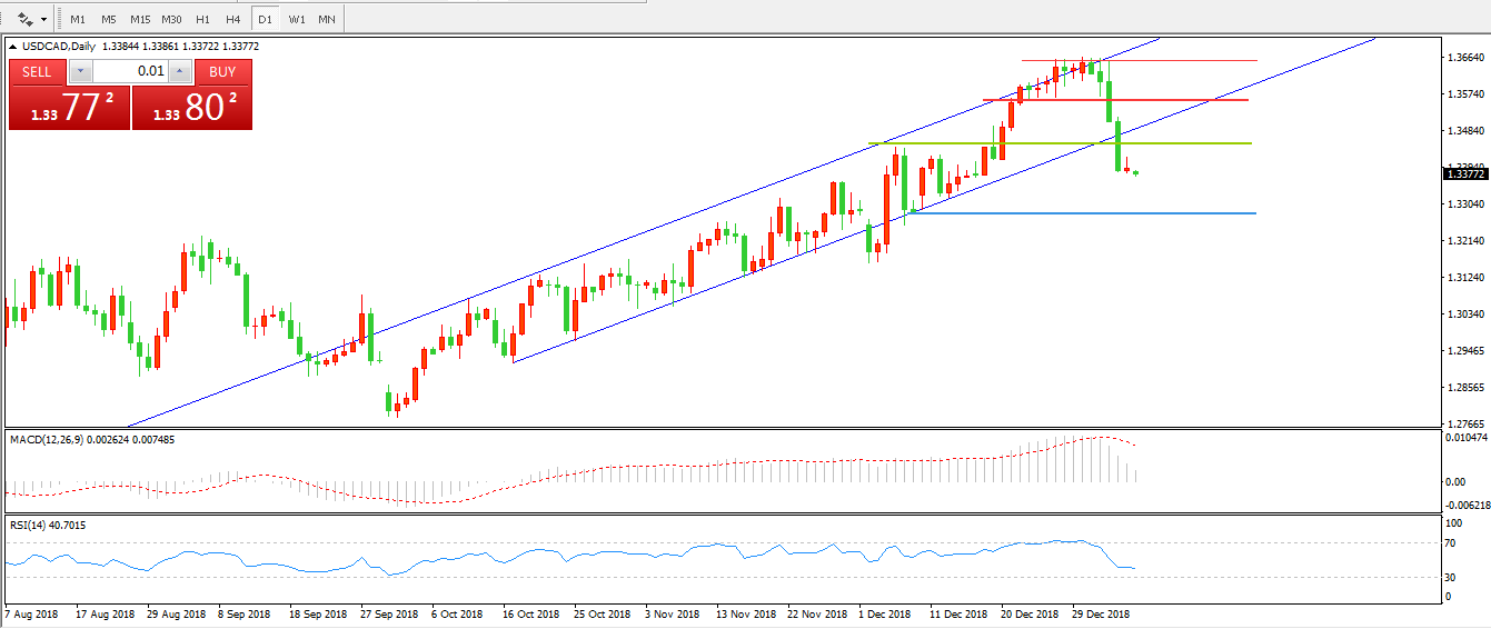 美元兑加元USDCAD 日线图