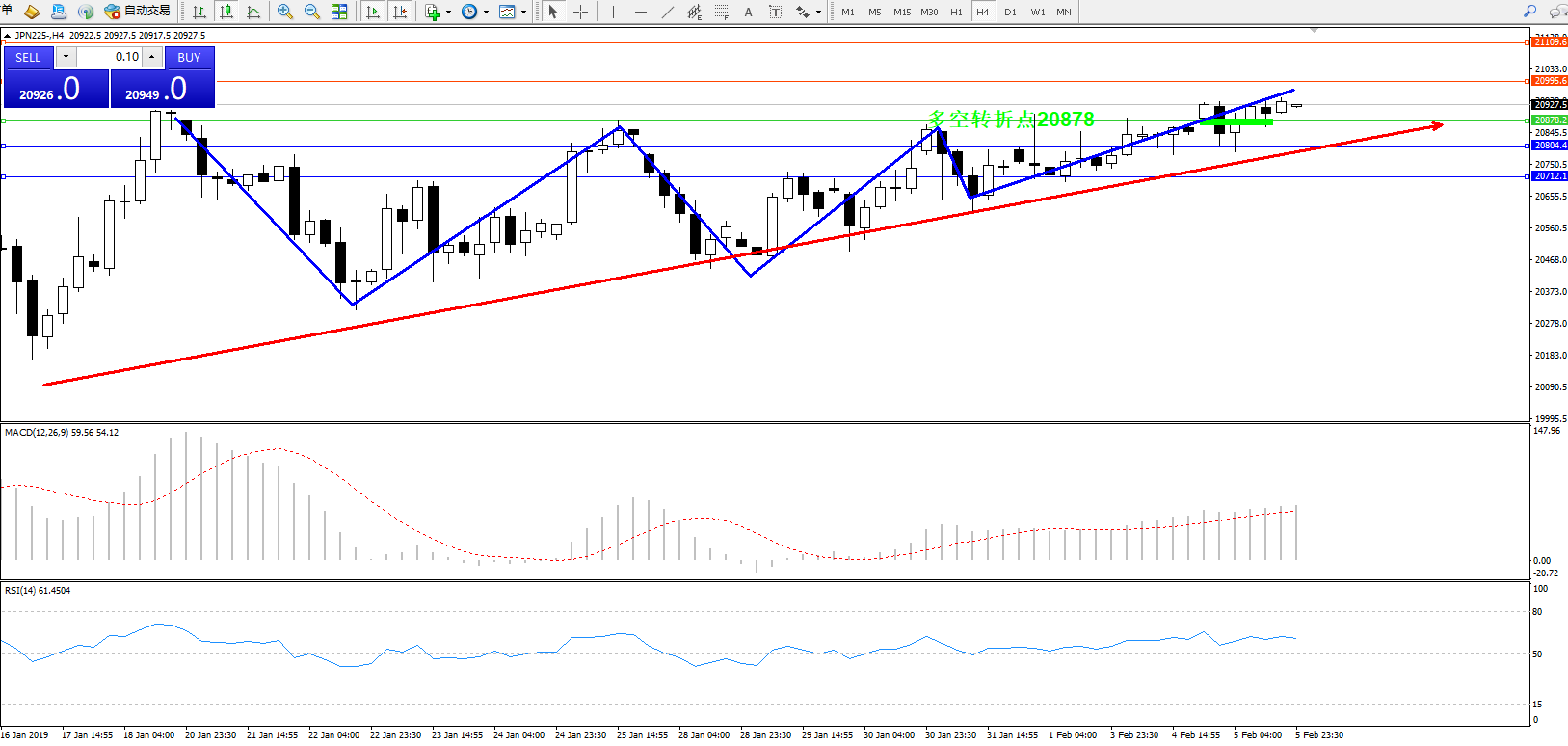 技术点评:多头延续趋势线上行,且走势良好,MACD指标多头区域缓慢上扬中,RSI指标多头区域平移;