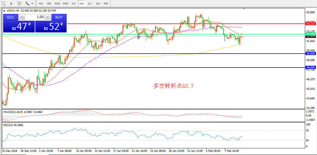 交易策略:在52.70之下看跌,目标50.00  48.00