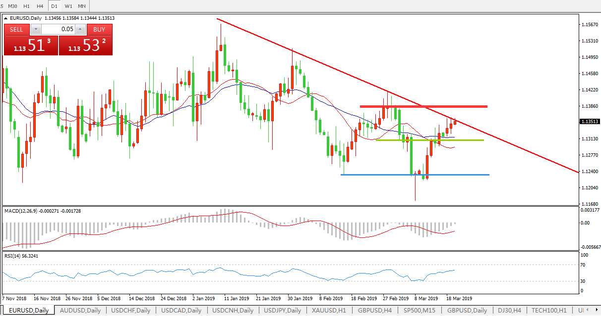 交易策略:在1.1300之上,看涨,目标价位为 1.1370,然后为1 .1420