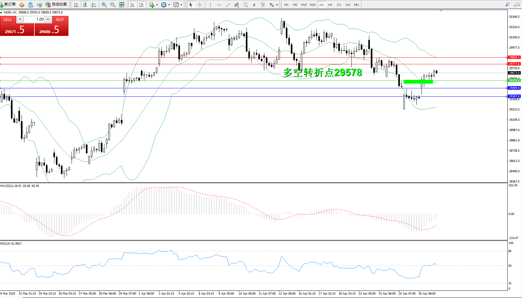 中国股市延续上周跌势,其中沪指连续六天下跌,深成指跌1.6%,香港恒生指数小幅高开后震荡走高,截至收盘,恒指涨0.97%,报29892.81点。劳动节假期因素料短期内打击股市走势以及交投氛围,港股或将在29000点至30000点波动港股早上跟随外围高开走强;外围市况若无明显利空,港股在部分超跌股反弹及利好一季报行情带动下,或有机会率先企稳回升。