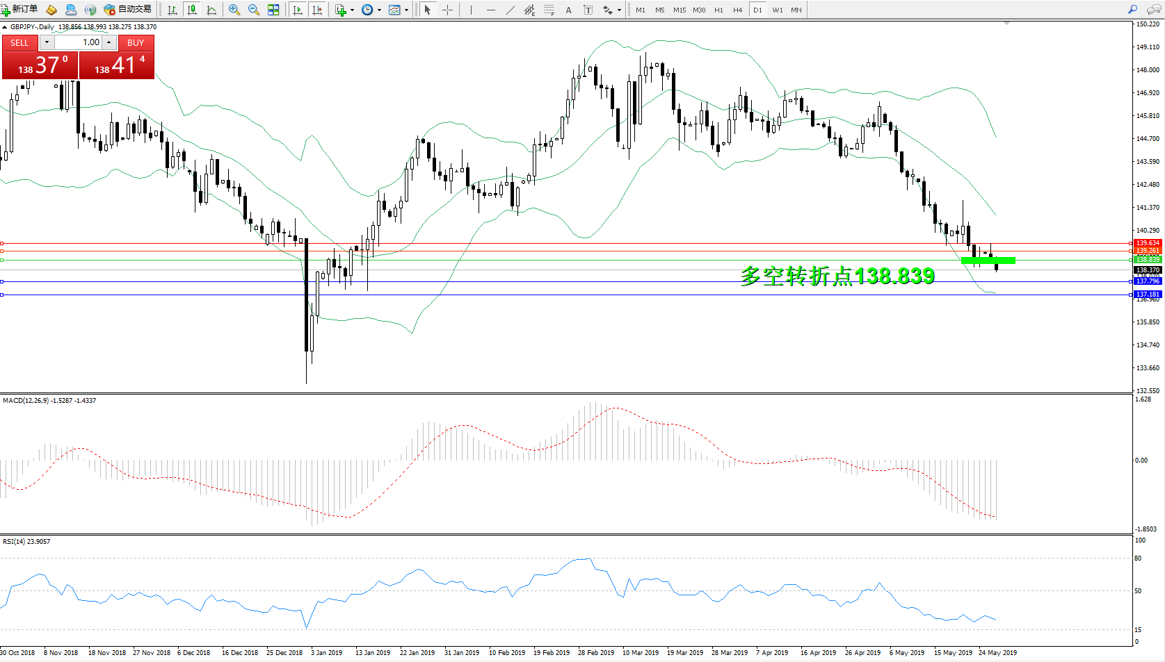 投资者原本期待英国新首相和欧盟新管理层上任后可以重启双边脱欧谈判,令英国脱欧是件体面收场。但从双方官员之后的表态却基本否认了这一前景,于是镑系续跌。而在欧盟选举过后,欧洲多国政局动荡的状况,却令资金流向了避险日元,这令英镑兑日元创出四个半月新低。虽然此后避险情绪降温令日元汇价回落,但是英镑兑日元的弱势仍有指标性意义,日内若无法反弹收复五日均线139.02,则在之后更多负面消息的影响下,这一近期以来跌势表现最为扎眼的交叉货币对仍有巨大的下探空间。