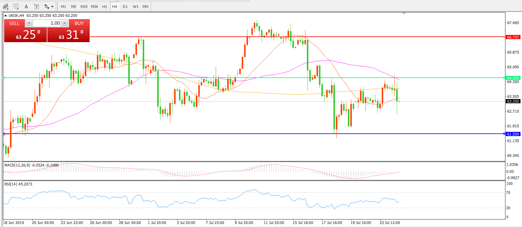 交易策略:在64.50之下看跌,目标61.50 57.50