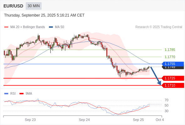 在 1.1755 之下,看跌,目标价位为 1.1725 ,然后为 1.1710 。