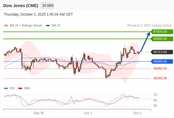 在 46580.00 之上,看涨,目标价位为 46900.00 ,然后为 47000.00 。