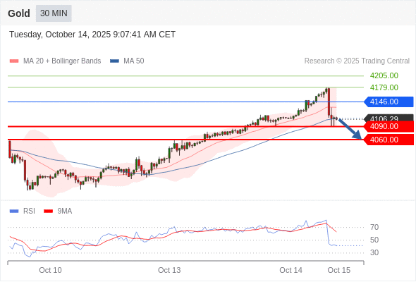 在 4146.00 之下,看跌,目标价位为 4090.00 ,然后为 4060.00 。