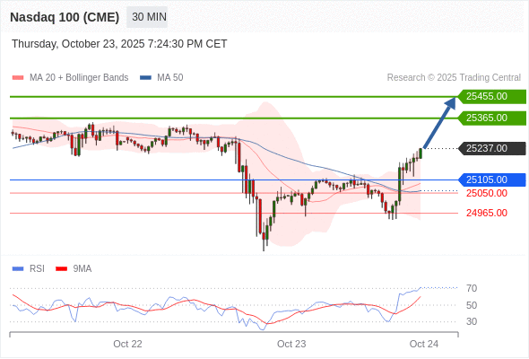 在 25105.00 之上,看涨,目标价位为 25365.00 ,然后为 25455.00 。