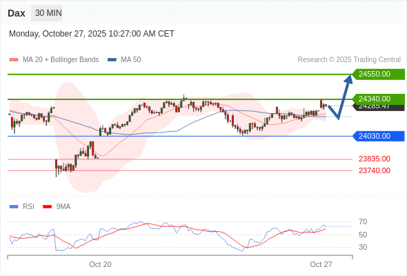 交易策略: 在 24030.00 之上,看涨,目标价位为 24340.00 ,然后为 24550.00 。