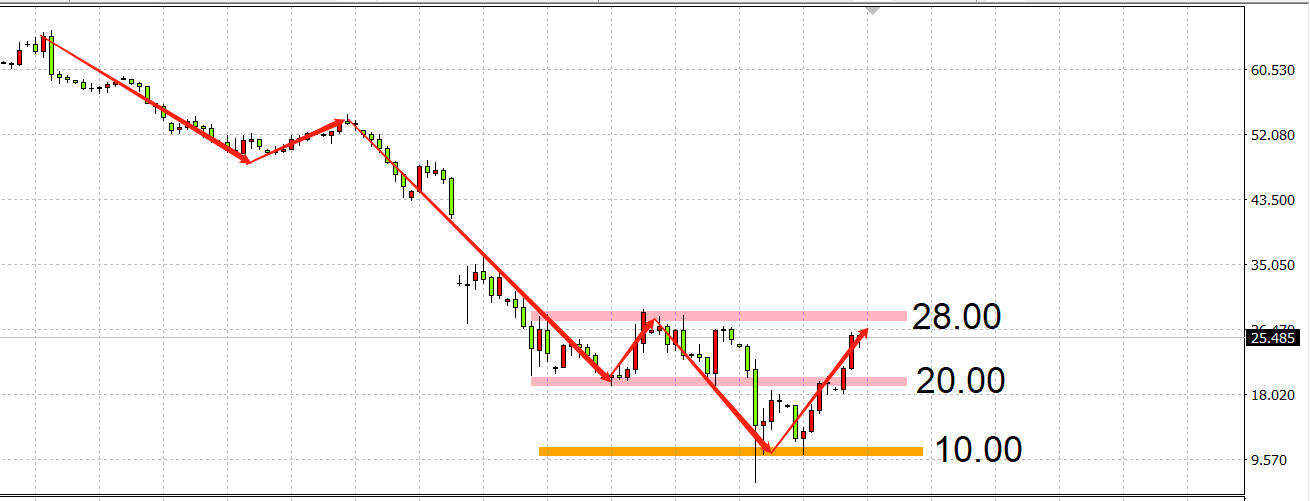 综上所述,油市已过最黑暗时间,重回20美元/桶说明市场看多情绪正在逐步恢复,一下从盘面走势做分析:
