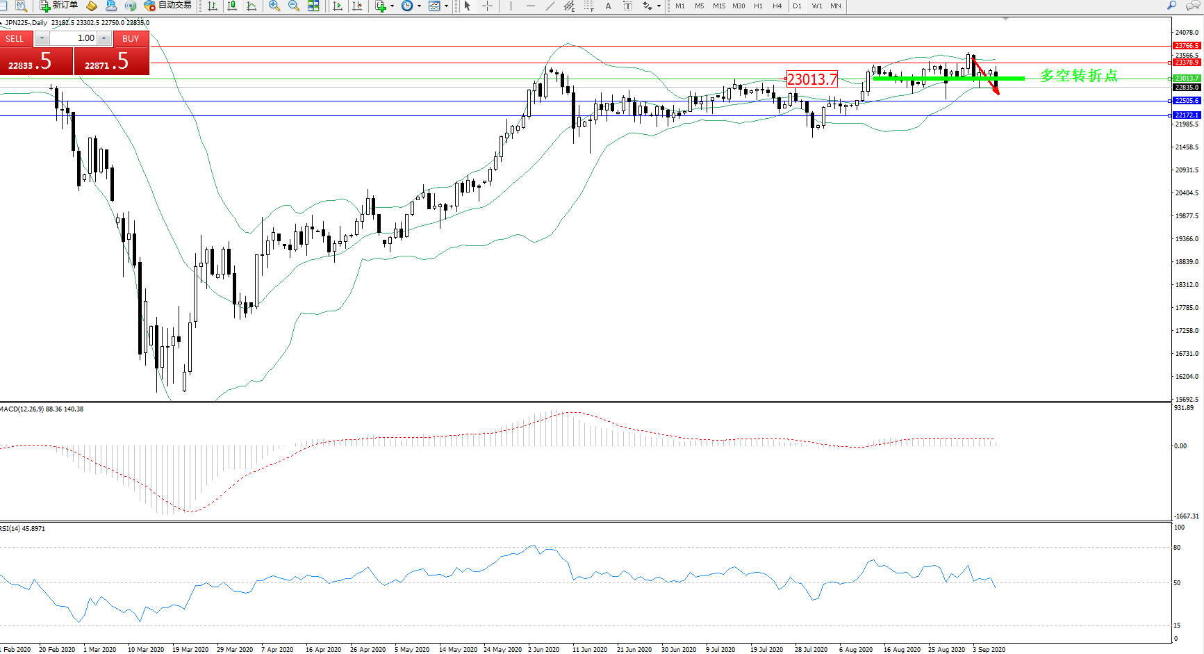日经225指数9月8日(周二)收盘上涨187.05点,涨幅0.81%,报23277.00点。日本上个季度创纪录的经济萎缩比最初的估计还要糟糕一些,彰显出在日本努力摆脱新冠疫情造成的滑坡之际,首相安倍晋三的继任者所面临的挑战。本政府周二批准从紧急预算储备中拨出6714亿日圆(合63.2亿美元),用于购买冠状病毒疫苗;日本政府希望在明年年中为每个公民提供足够的疫苗,并且免费提供。日本GDP创出1955年以来最大降幅得到确认之际,其执政党正准备在下周选出新首相。该国任期最长的首相安倍晋三上个月因健康原因宣布辞职,引领复苏的领导层出现了一些不确定因素。首相安倍晋三继任者的自民党总裁选举的告示发布,自民党前干事长石破茂、官房长官菅义伟和自民党政务调查会长岸田文雄3人被提名为候选人,3名候选人将在下午举行发表政见的演讲会和联合记者会。