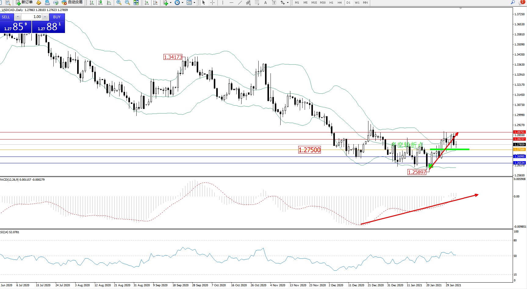 交易策略:1.27500上方看涨,目标1.28237、1.28751