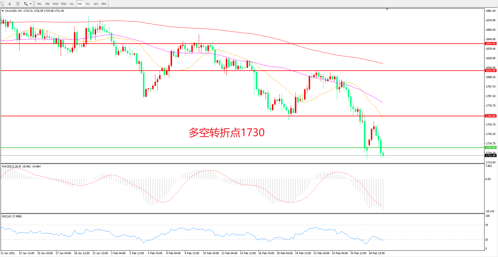 交易策略:在1730.00之下看跌,目标1700.00 1660.00