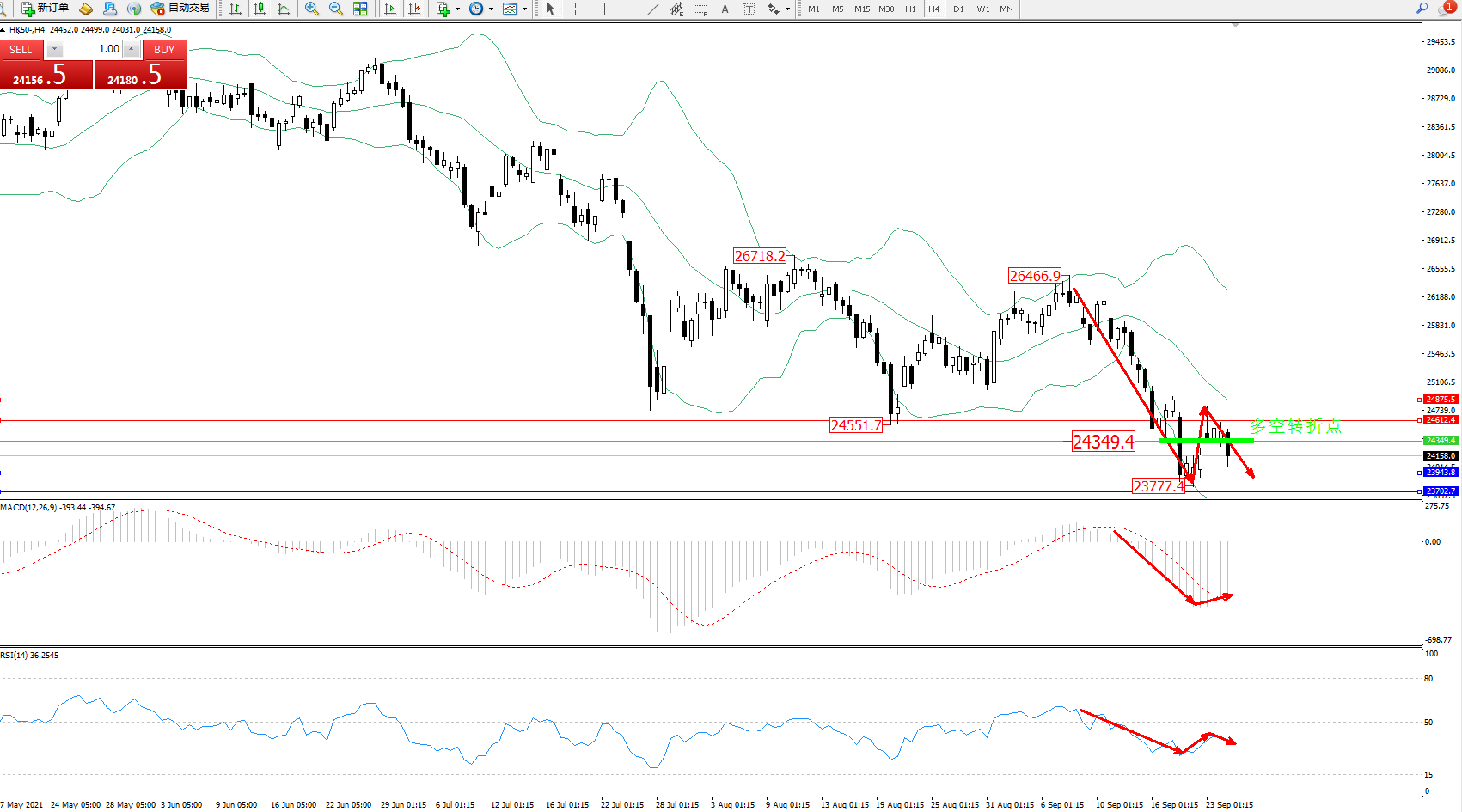 港股三大指数午后跌幅持续扩大,市场情绪表现较弱。恒生科技指数跌2.23%报6159点。大型科技股普跌,快手重挫逾9%,阿里巴巴跌近3%,小米、网易、百度跌超1%;恒大概念股继续下挫,电力股延续昨日强势行情,弱势中表现较佳,烟草概念股、港口航运股小幅走高。今日大市成交额为1475亿港元,南下资金逆势净流入57.87亿港元。近期资金偏防御的情况下,尽量多看少动,等后续右侧交易机会出现后再多操作。长期来看,恒指由于整体估值水平较低,资金关注度仍然较高,后续优质个股有望逐渐迎来资金抄底。