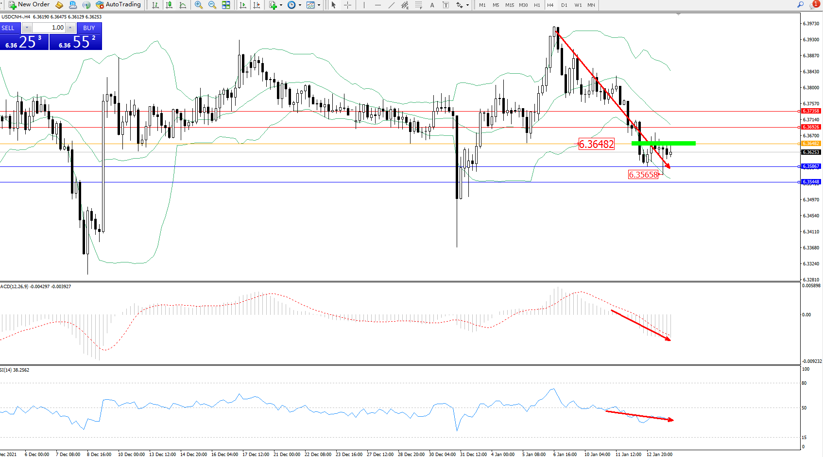 备选策略:6.36482上方看涨,目标6.36926、6.37358