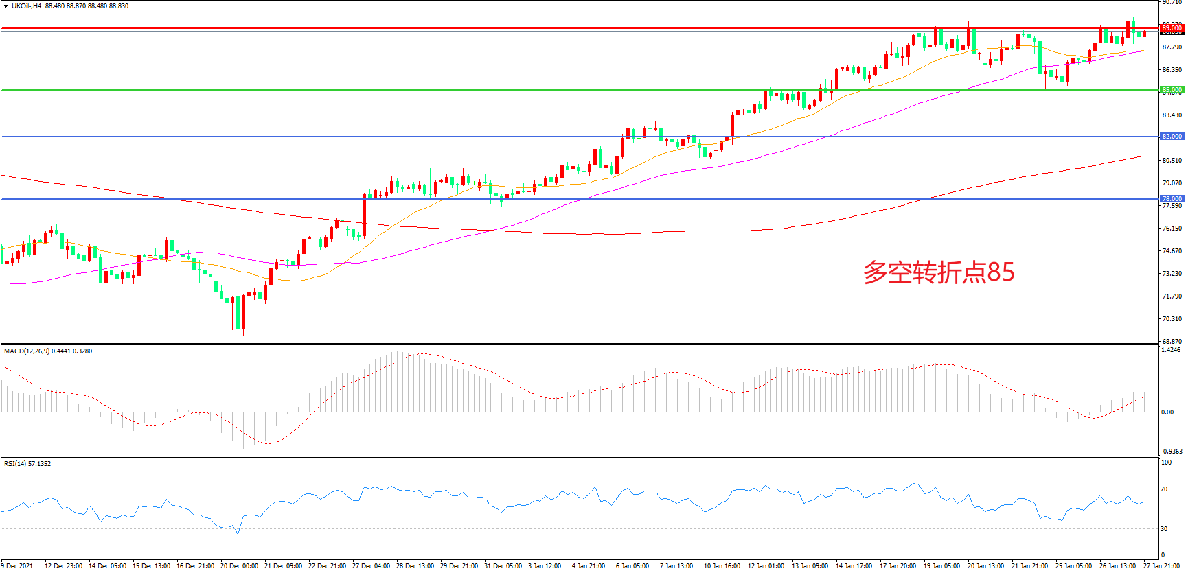 交易策略:在85.00之上看涨,目标89.00 93.00