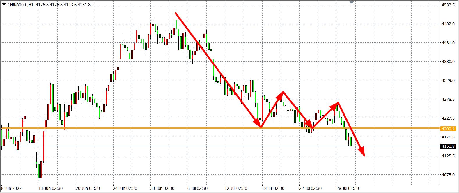 1小时图看,沪深300首度跌穿4200的支撑,趋势开始转为弱势,同时MACD于零轴之下量能放大,预示行情有进一步回探的风险,目前4200已由支撑转为阻力,在该位之下看4100-4050