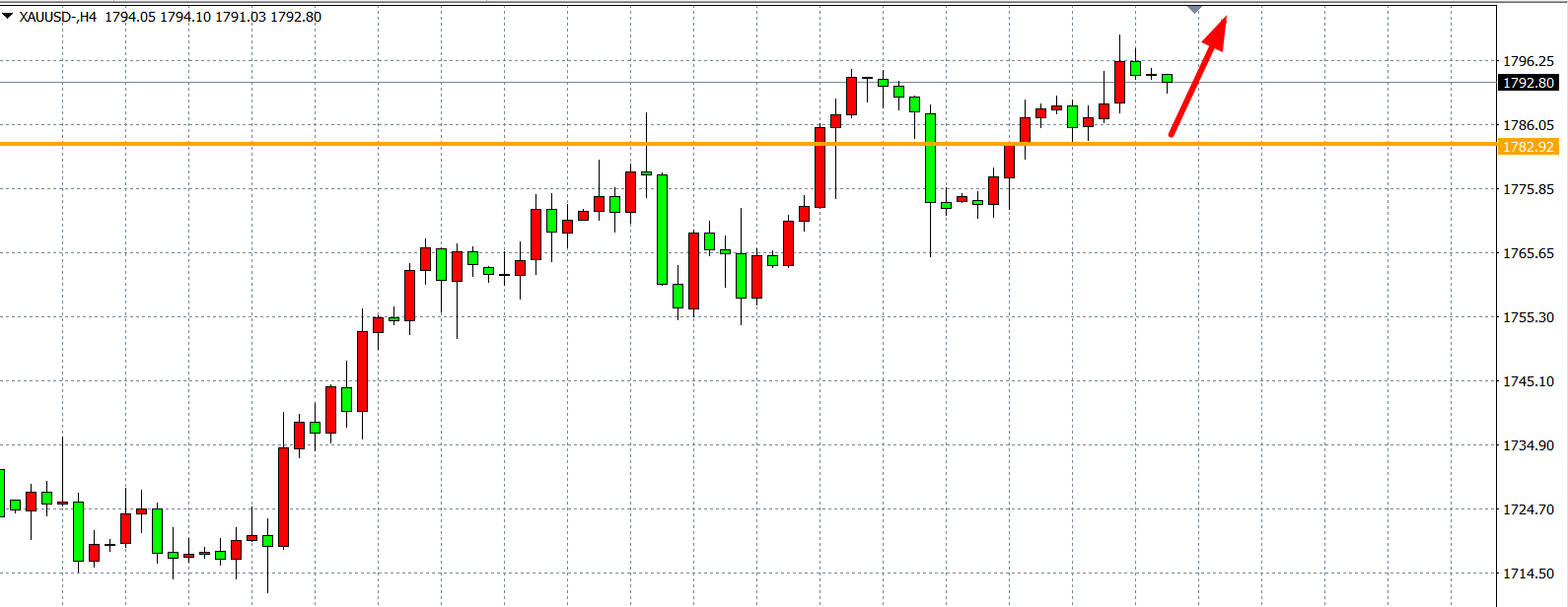 交易策略:在1782.00之上看涨,目标1800.00 1820.00