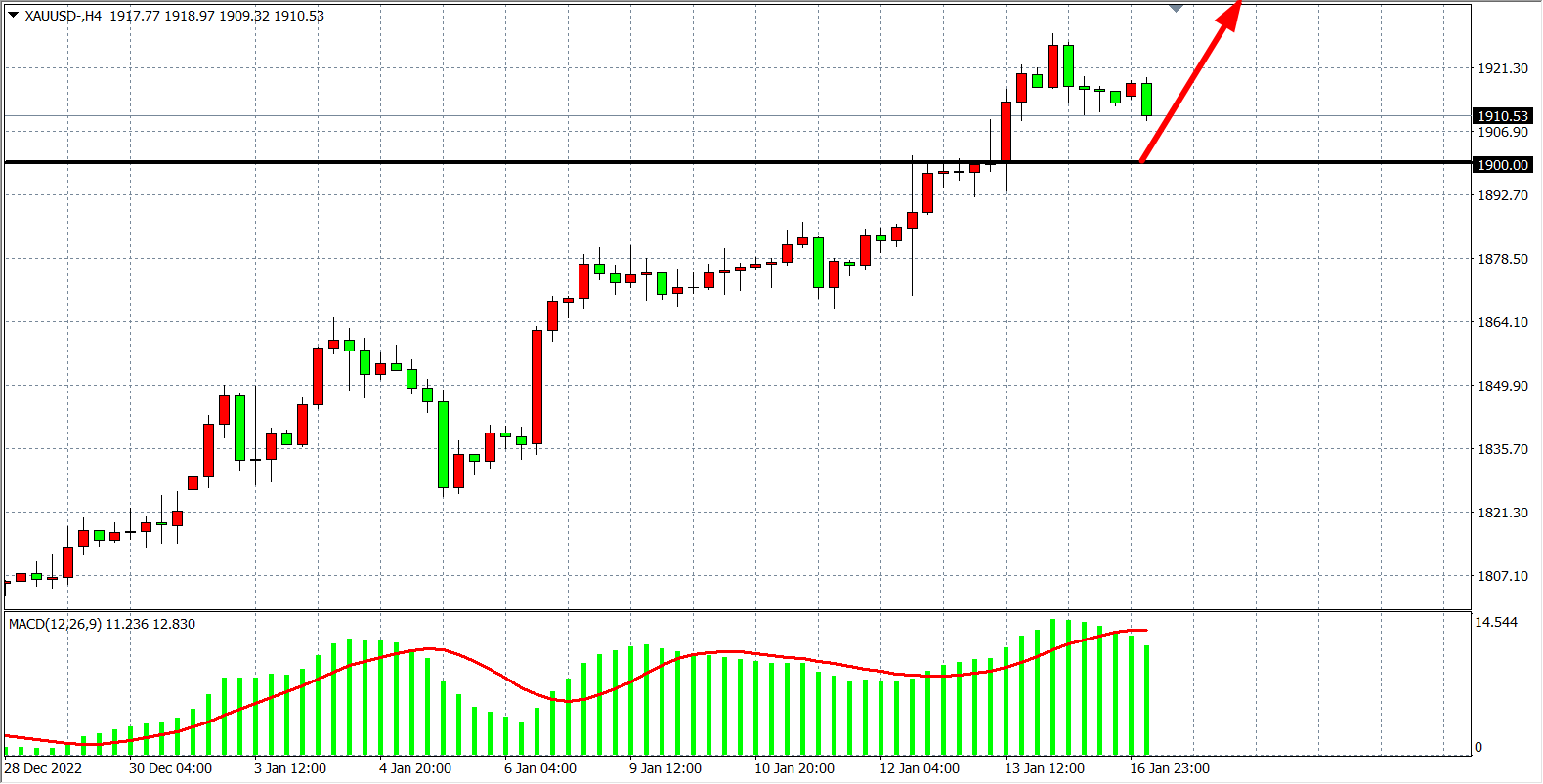 交易策略:在1900.00 之上看涨,目标1920.00         1930.00