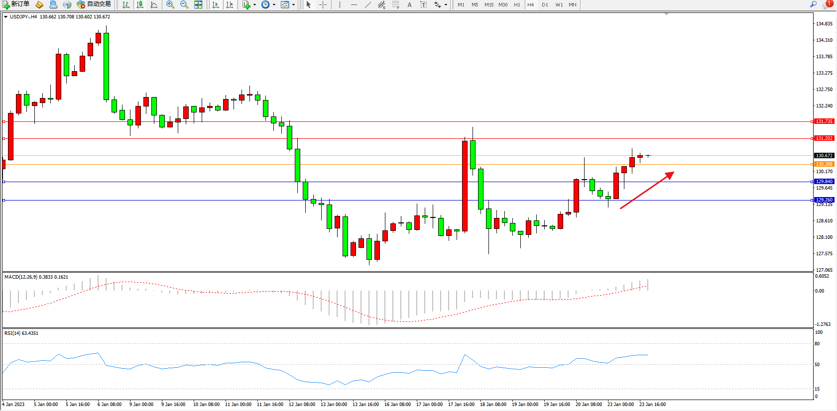 交易策略:130.388上方看涨,目标131.202、131.735