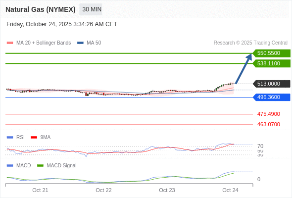 Natural Gas (NYMEX) (DEC5) 当日内: 看涨,当 496.3600 为支撑位。