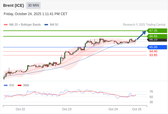 在 65.00 之上,看涨,目标价位为 66.55 ,然后为 67.35 。